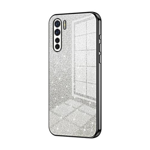 Para Oppo A91 Estuche para Teléfono Galvanizado con Polvo de Brillo Degradado (Negro)