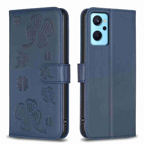 Para Oppo A94 4G / Reno5 F / F19 Pro Funda para Teléfono de Cuero En Relieve de Cuatro Hojas (Azul)