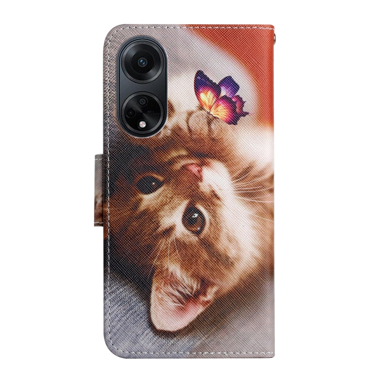 Para Oppo A98 Funda de Cuero para Teléfono con Patrón de Dibujo Coloreado (Gato Mariposa)