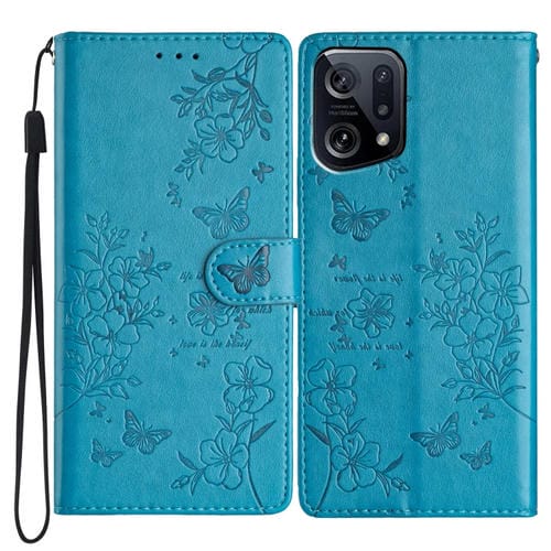 Para Oppo Find X5 Funda para Teléfono de Cuero con Relieve de Flor de Amor y Mariposa (Azul)