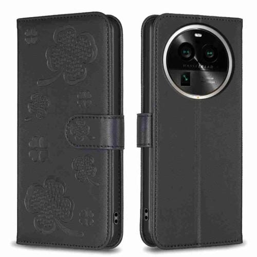 Para Oppo Find X6 Pro Funda de Cuero con Relieve de Cuatro Hojas para Teléfono (Negro)