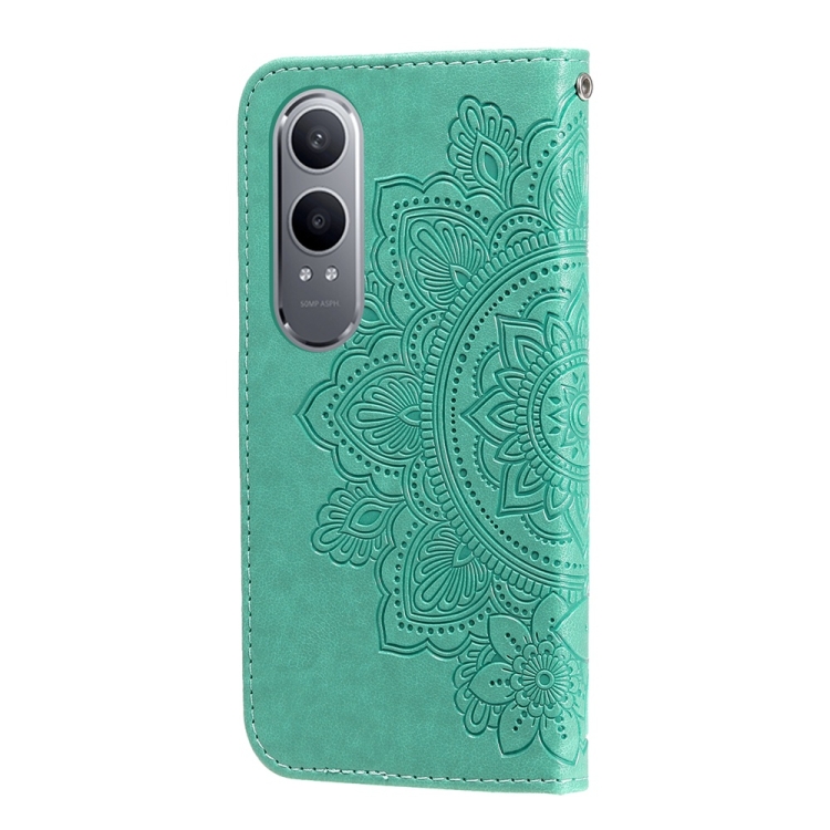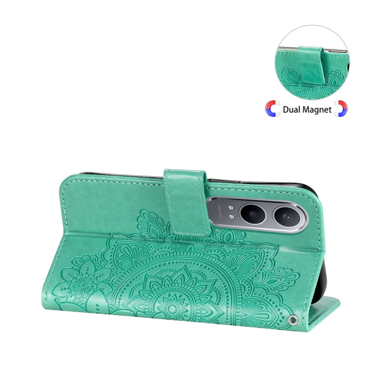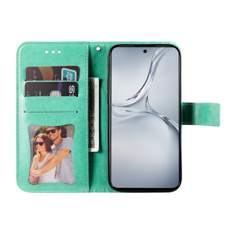 Para Oppo K12X Funda de Teléfono de Cuero con Estampado de Flores de Siete Pétalos (Verde)