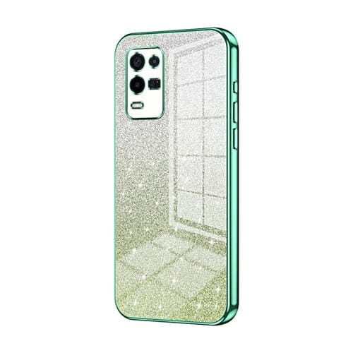 Para Oppo K9X Estuche para Teléfono Galvanizado con Polvo de Brillo Degradado (Verde)