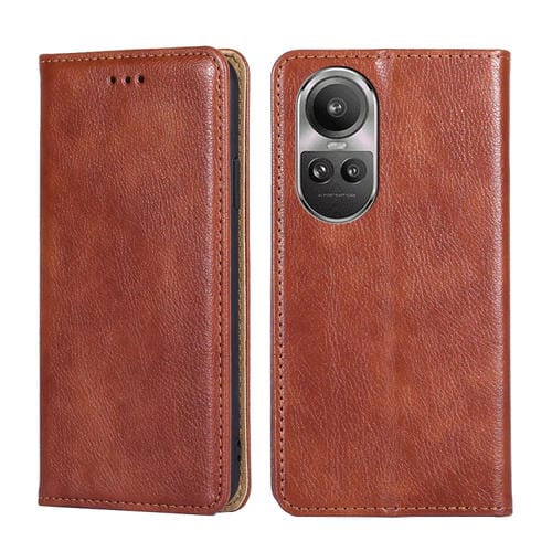 Para Oppo Reno10 5G / Reno10 Pro 5G Funda de Teléfono de Cuero Magnético de Color Sólido con Brillo Global (Marrón)