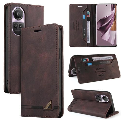 Para Oppo Reno10 Global Skin Feel Funda de Cuero con Tapa Horizontal con Cepillo Antirrobo y Soporte (Marrón)