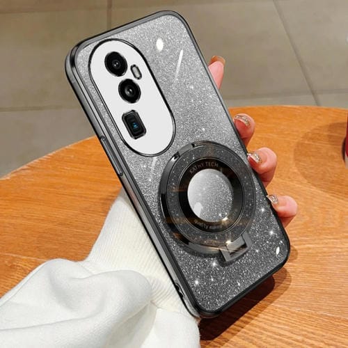 Para Oppo Reno10 Pro + Estuche para Teléfono de TPU con Soporte Redondo y Brillo Degradado Plateado (Negro)