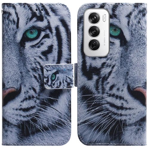 Para Oppo Reno12 5G Funda de Teléfono de Cuero con Tapa con Dibujo Coloreado Global (Tigre)