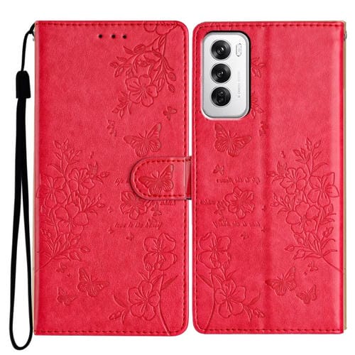 Para Oppo Reno12 5G Global Butterfly Love Flower Funda de Cuero para Teléfono En Relieve (Rojo)
