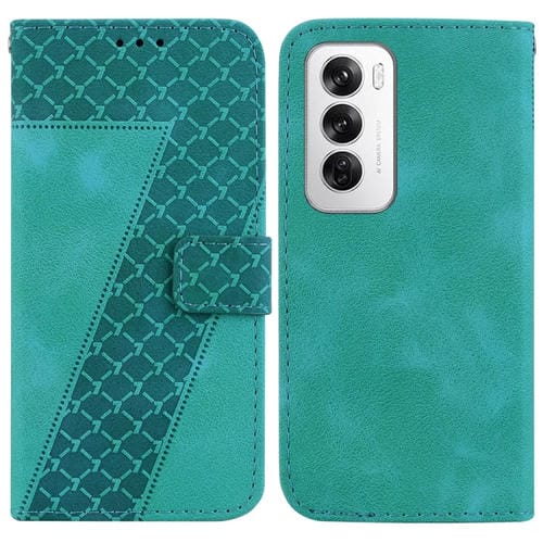 Para Oppo Reno12 5G Global Funda de Cuero En Relieve con Forma de 7 (Verde)