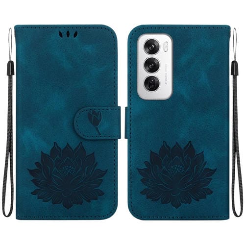 Para Oppo Reno12 5G Global Lotus Funda de Cuero En Relieve para Teléfono (Azul Oscuro)