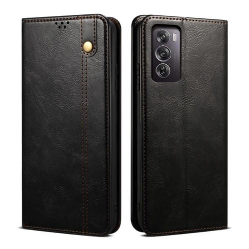 Para Oppo Reno12 5G Global Oil Wax Crazy Horse Texture Funda de Cuero para Teléfono (Negro)