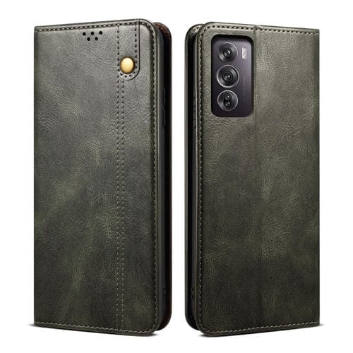 Para Oppo Reno12 5G Global Oil Wax Crazy Horse Texture Funda de Cuero para Teléfono (Verde Oscuro)