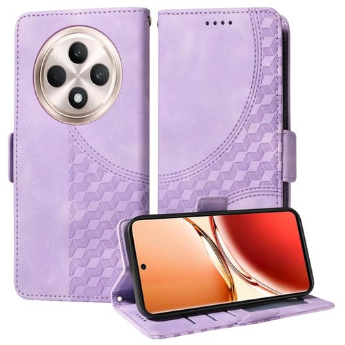 Para Oppo Reno12 F 5G Funda de Teléfono de Cuero Estrellado con Rombo En Relieve Global (Púrpura)