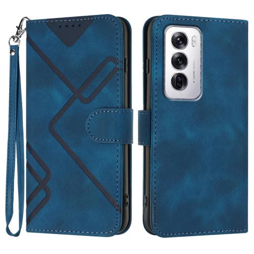 Para Oppo Reno12 Funda de Teléfono de Cuero con Sensación de Piel con Patrón de Línea Global (Azul Real)