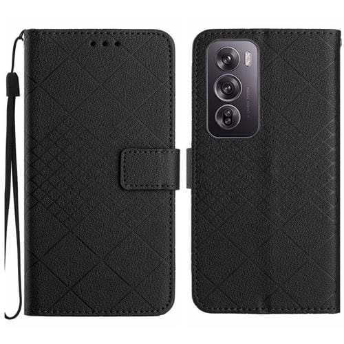 Para Oppo Reno12 Pro 5G Funda de Cuero con Textura de Rejilla Rómbica Global (Negro)