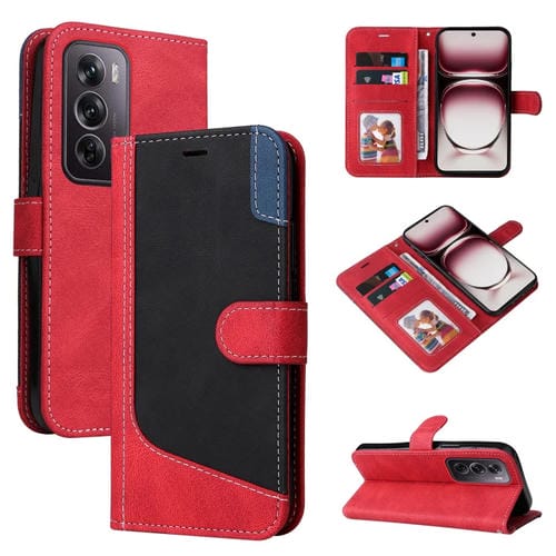Para Oppo Reno12 Pro 5G Funda de Teléfono de Cuero con Empalme de Tres Colores Global (Rojo)