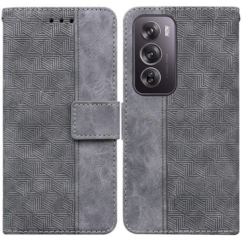 Para Oppo Reno12 Pro 5G Funda de Teléfono de Cuero con Relieve Geométrico Global (Gris)