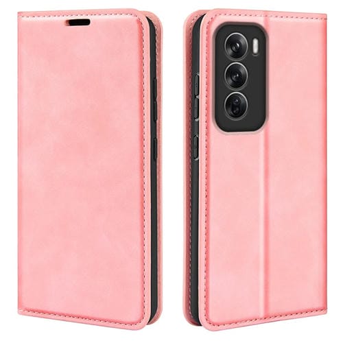 Para Oppo Reno12 Pro 5G Funda de Teléfono de Cuero con Succión Magnética de Piel Retro Global (Rosa)