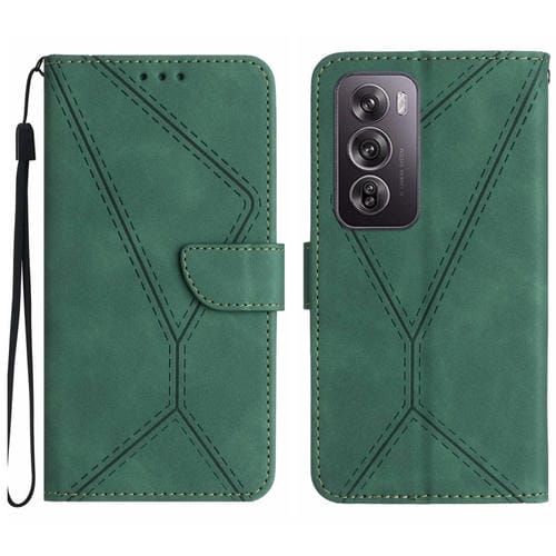 Para Oppo Reno12 Pro 5G Funda de Teléfono de Cuero En Relieve con Costuras Globales (Verde)
