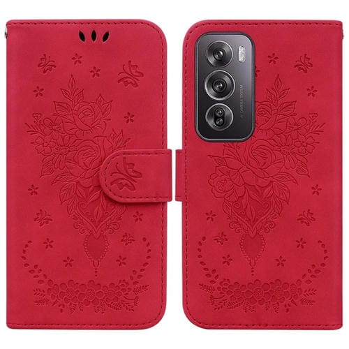 Para Oppo Reno12 Pro 5G Global Butterfly Rose Funda de Cuero para Teléfono En Relieve (Rojo)