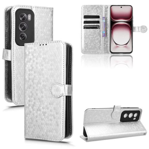 Para Oppo Reno12 Pro 5G Global Honeycomb Dot Texture Funda de Cuero para Teléfono (Plata)