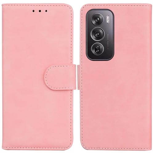 Para Oppo Reno12 Pro 5G Global Skin Feel Funda de Teléfono de Cuero con Tapa de Color Puro (Rosa)