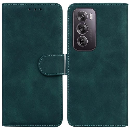 Para Oppo Reno12 Pro 5G Global Skin Feel Pure Color Funda de Cuero con Tapa para Teléfono (Verde)
