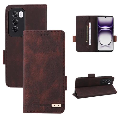 Para Oppo Reno12 Pro Funda de Cuero para Teléfono con Cierre Magnético Global (Marrón)