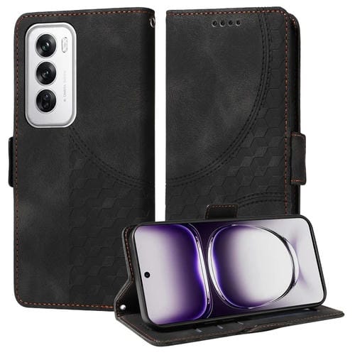 Para Oppo Reno12 Pro Funda de Teléfono de Cuero Estrellado con Rombo En Relieve Global (Negro)