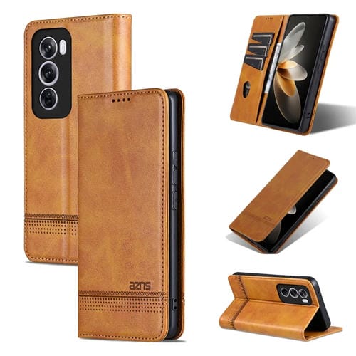 Para Oppo Reno12 Pro Global Azns Funda para Teléfono de Cuero con Tapa con Textura de Pantorrilla Magnética (Marrón Claro)