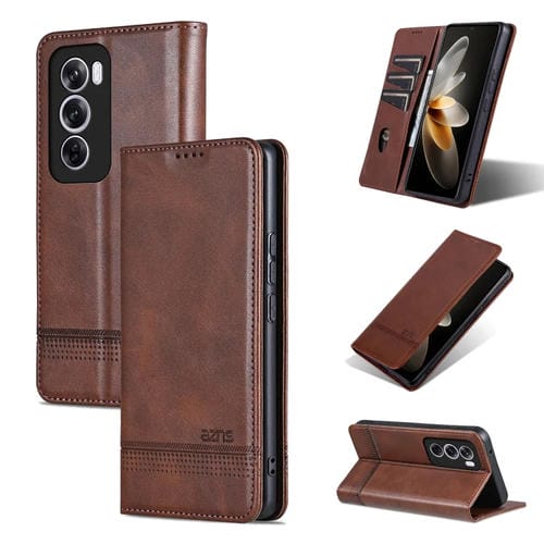 Para Oppo Reno12 Pro Global Azns Funda para Teléfono de Cuero con Tapa con Textura de Pantorrilla Magnética (Marrón Oscuro)