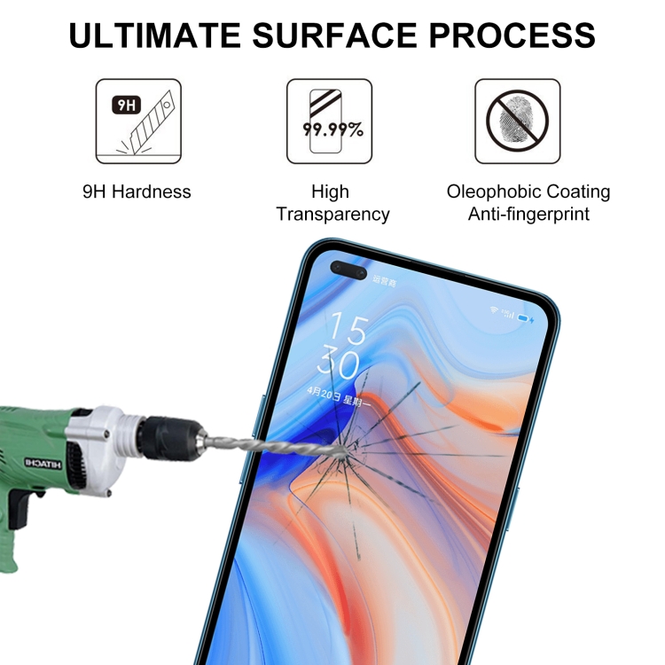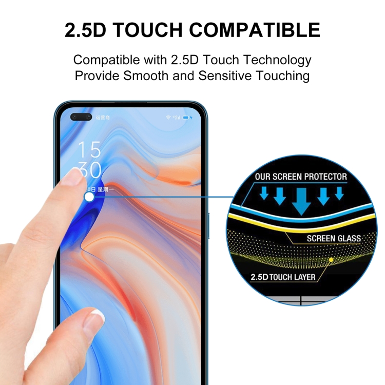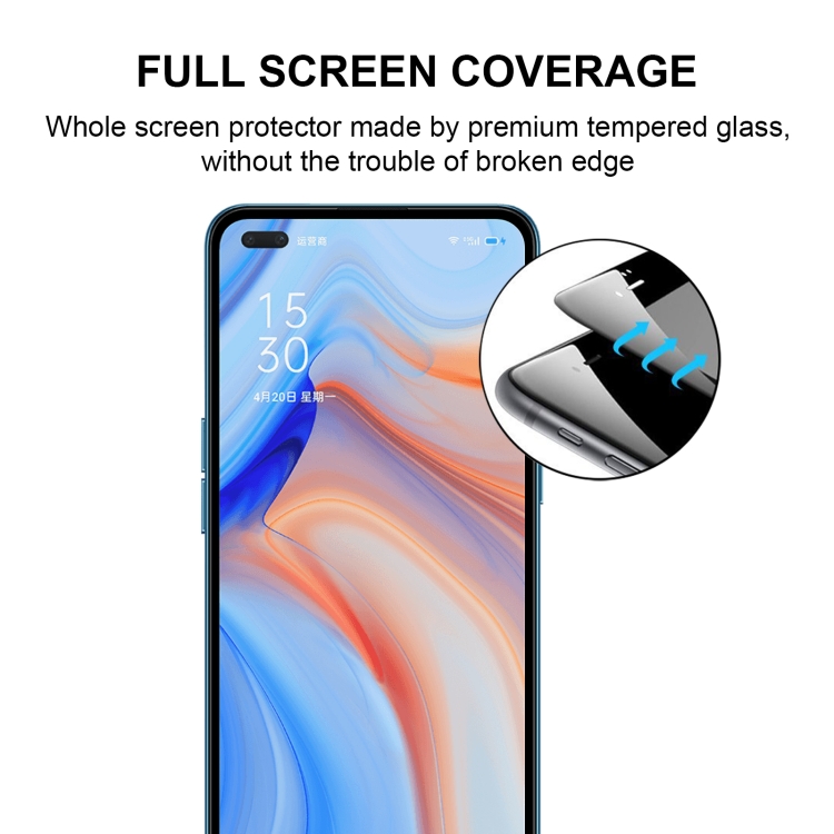 Para Oppo Reno4 25 PCs Full Glue Pantalla Completa Película de Vidrio Templado