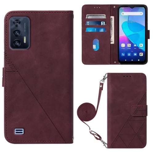 Funda de Cuero con Tapa En Relieve para Oukitel C31 Crossbody (Rojo Vino)
