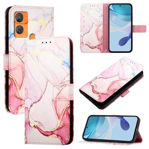 Funda de Cuero para Oukitel C33 Pt003 con Tapa y Patrón de Mármol (Oro Rosa)