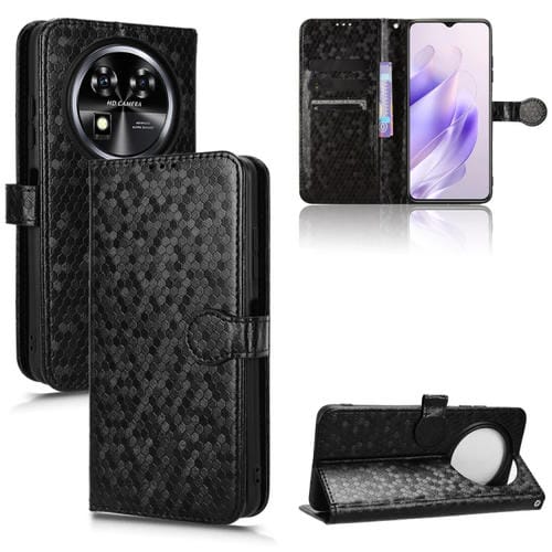 Funda de Cuero para Oukitel C37 con Textura de Punto de Panal (Negro)