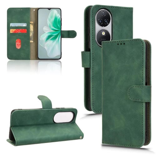 Funda de Cuero para Oukitel C38 con Tapa Magnética Skin Feel (Verde)