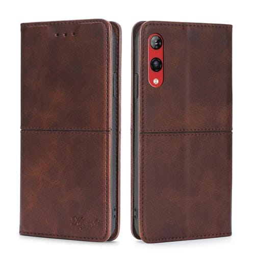Funda de Cuero para Rakuten Hand 4G con Tapa Horizontal Magnética y Textura de Vaca (Marrón Oscuro)