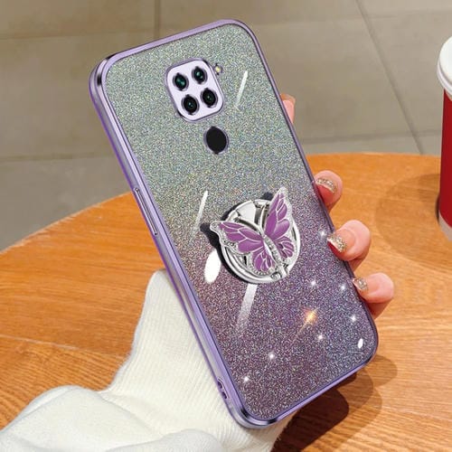 Para Redmi 10X 4G Estuche para Teléfono de TPU con Soporte de Mariposa con Brillo Degradado Plateado (Púrpura)