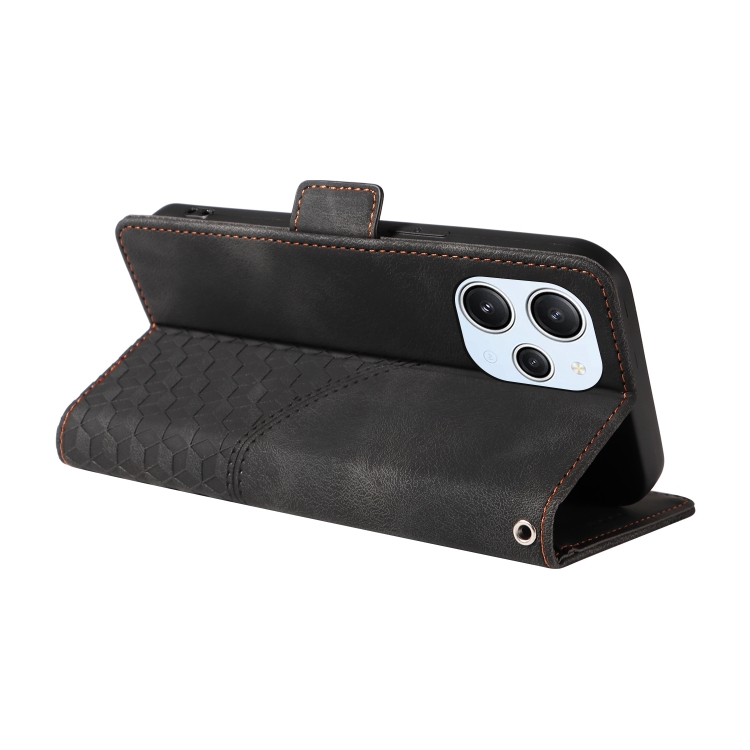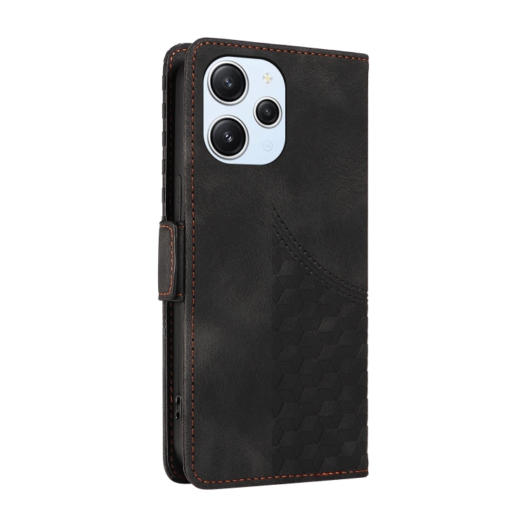 Para Redmi 12 4G / 5G / Note 12R Funda para Teléfono de Cuero Estrellado con Rombos En Relieve (Negro)