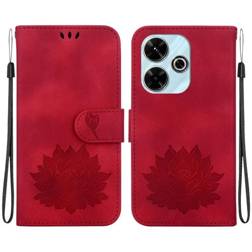 Para Redmi 13 4G Lotus Funda de Cuero En Relieve para Teléfono (Rojo)