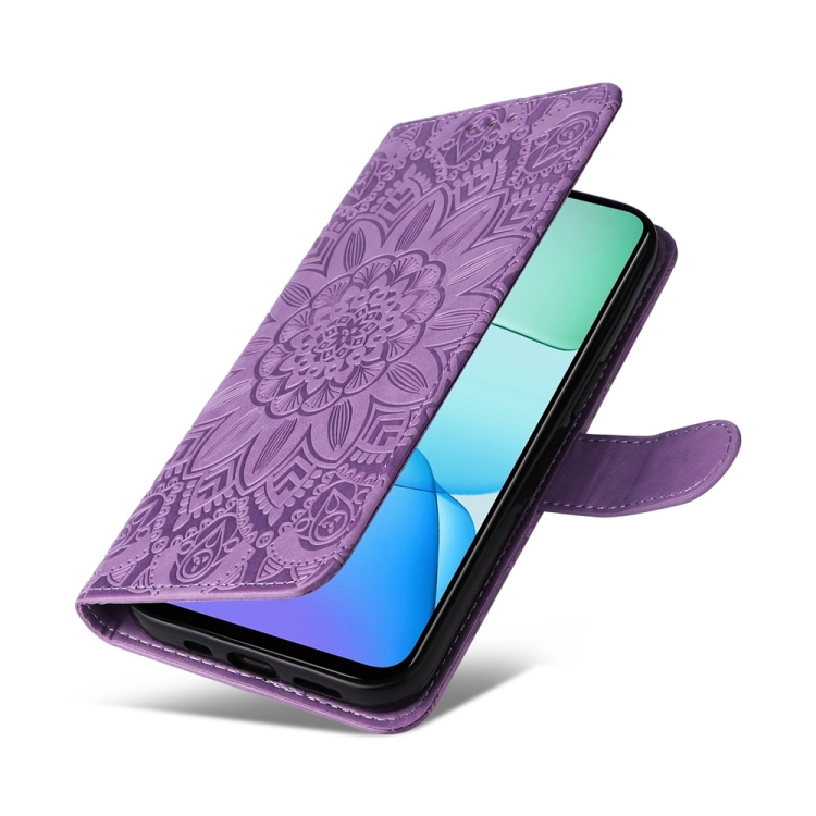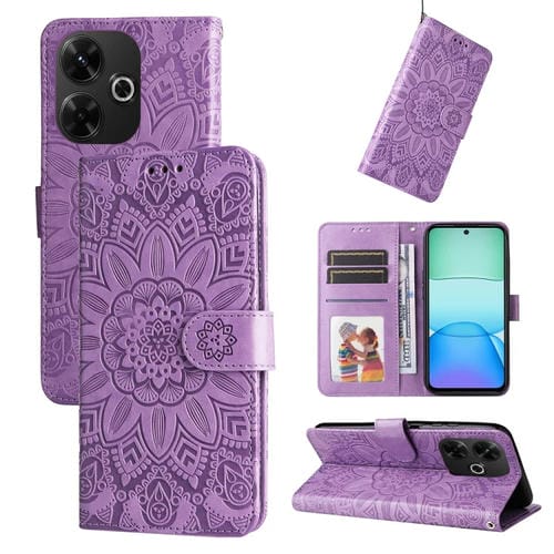 Para Redmi 13 4G / Redmi Note 13R Funda para Teléfono de Cuero con Girasol En Relieve (Púrpura)
