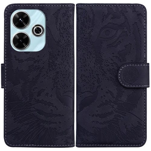Para Redmi 13 4G Tiger Embossed Pattern Funda de Cuero con Tapa para Teléfono (Negro)