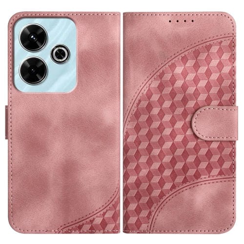 Para Redmi 13 4G Yx0060 Funda de Cuero para Teléfono con Relieve y Cabeza de Elefante con Cordón (Rosa)