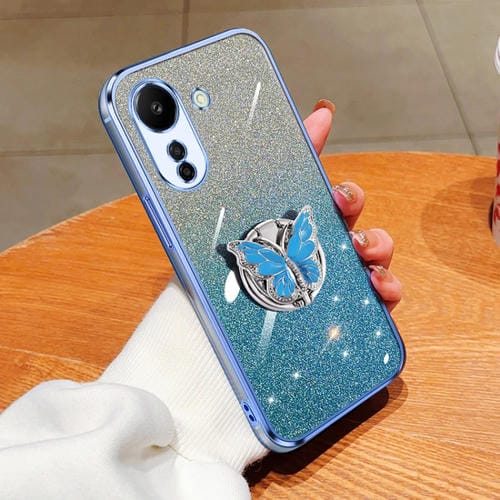 Para Redmi 13C Estuche para Teléfono de TPU con Soporte de Mariposa con Brillo Degradado Plateado (Azul Sierra)