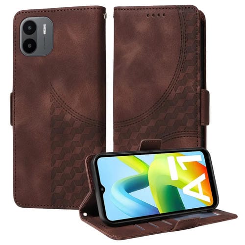 Para Redmi A1 4G / A2 4G Funda de Teléfono de Cuero Estrellado con Rombos En Relieve (Marrón)