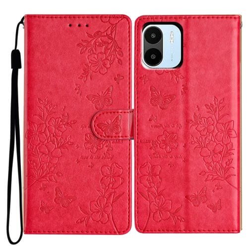 Para Redmi A1 Funda de Cuero para Teléfono con Mariposas y Flores (Rojo)