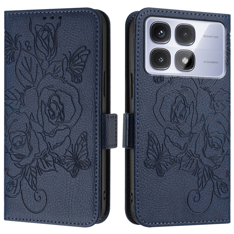 Para Redmi K70 Ultra 5G Funda de Teléfono de Cuero Antirrobo Rfid con Relieve Global (Azul Oscuro)