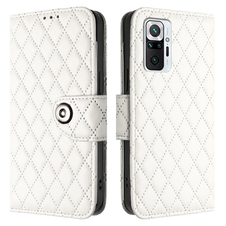 Para Redmi Note 10 Pro India Funda de Cuero con Tapa con Textura Rómbica y Cordón (Blanco)