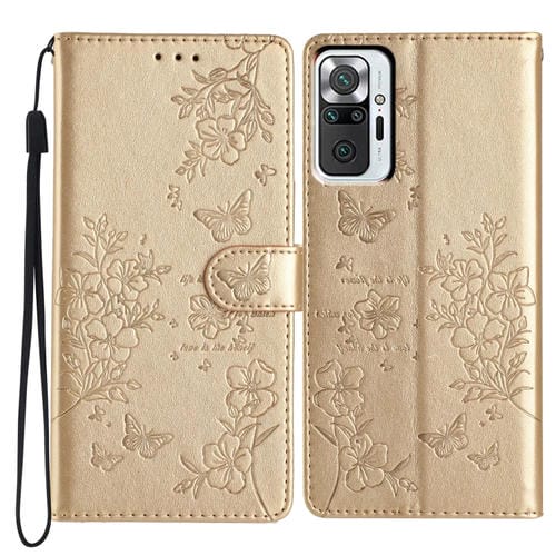 Para Redmi Note 10 Pro Max Funda de Cuero para Teléfono con Mariposas y Flores (Dorado)