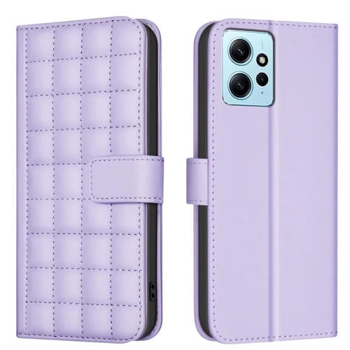 Para Redmi Note 12 4G Funda de Cuero para Teléfono con Textura Cuadrada Global (Púrpura)